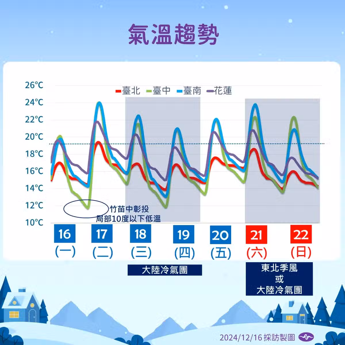 ▲未來一周氣溫趨勢。(圖/氣象署提供)