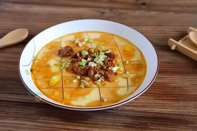 豬肉味甘咸,性平,具有滋陰潤燥功效。雞蛋有養心安神、補血、滋陰潤燥的作用。將豬肉末裝碗,加入食鹽、醬油、料酒、薑末、色拉油和少許水攪拌均勻,倒入湯盆內。