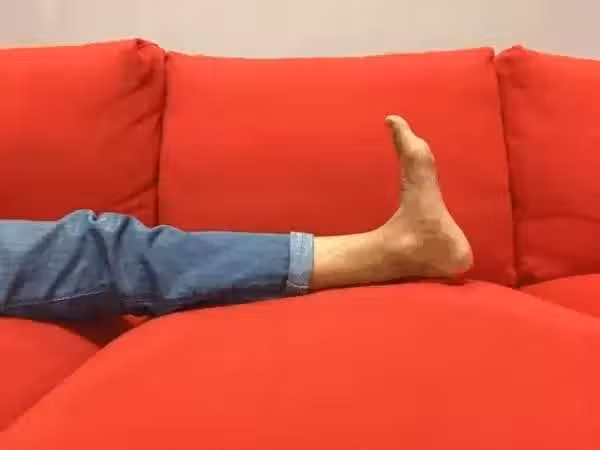 雙膝自然伸展, 用盡全力勾腳 10 秒鐘後再用盡全力繃腳, 反覆進行,在不引起疼痛的前提下不限次數,越多越好。