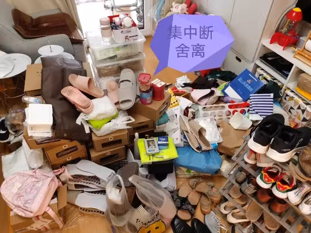 多餘的鞋盒,已經乾涸的鞋油,髒兮兮的擦鞋布,壞掉的雨傘,多餘的鑰匙扣,沒有用的鑰匙,不用的增高鞋墊,劣質的一次性雨衣。
