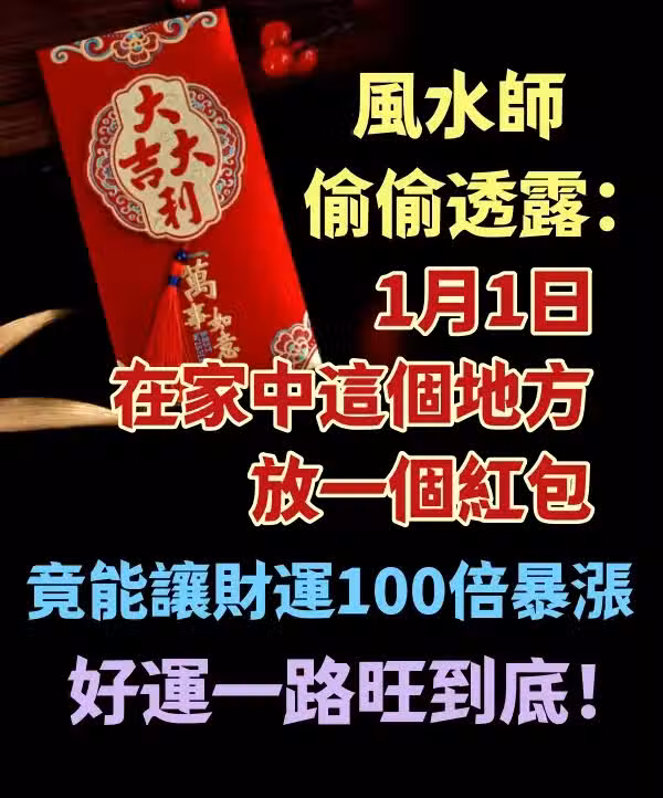 風水師偷偷透露:1月1日在家中這個地方,放一個紅包,竟能讓財運100倍暴漲,好運一路旺到底…