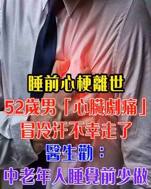 睡前心梗離世!52歲男「心臟劇痛」冒冷汗不幸走了, 醫生勸:中老年人睡覺前少做~