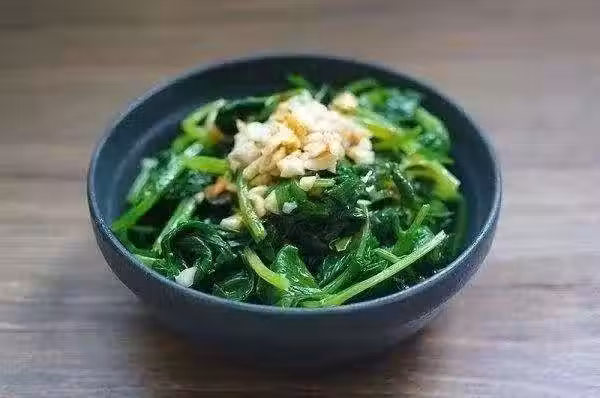 1.芹菜葉洗凈後,在沸水中煮軟後撈出,然後過涼水沖涼。