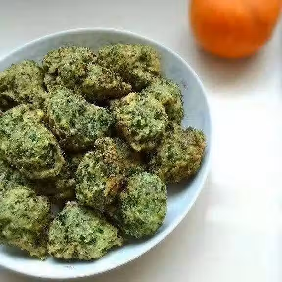 4.最後裝盤,放入蒜泥和油潑辣子,蘸著吃或者拌開都行。 芹菜葉丸子 這種小丸子,大人小孩都喜歡。