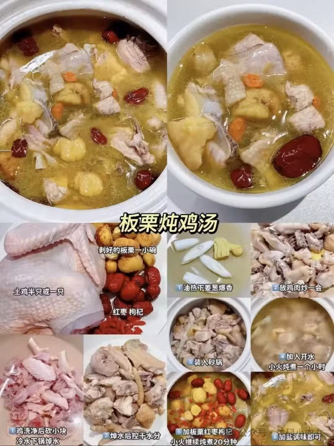 2⃣️冬蟲夏草烏雞湯 在古老的食養智慧里,冬蟲夏草與烏雞的相遇宛如天作之合。冬蟲夏草,似大地饋贈的靈物;烏雞,為禽中滋補瑰寶。二者於一鍋之中燉煮,蟲草的獨特韻味與烏雞的醇厚肉香交織纏綿。湯汁漸濃,每一滴都蘊含著自然的奧秘與生命的精華,輕啜一口,仿若活力與元氣在體內緩緩甦醒。