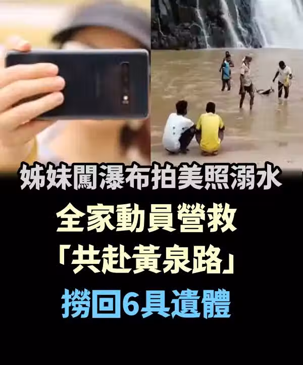 日前印度有一家七口人跑到當地的瀑布名勝區遊玩,沒想到其中兩姊妹在靠近瀑布區開心自拍時,不小心失足掉進深水潭,還被卡在裡面上不來,其他家族成員發現後,總動員下水搜救,結果也被捲入,一家有六人都不幸溺斃。