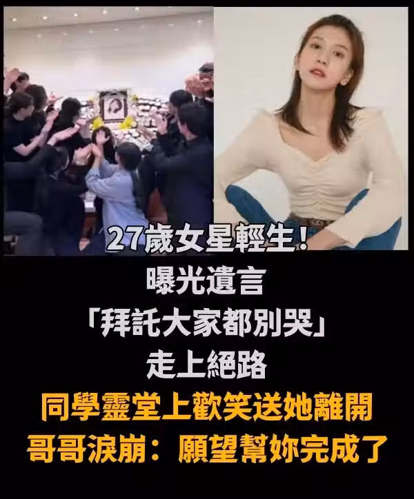 27歲當紅女星輕生!曝光遺言「拜託大家都別哭」走上絕路 同學靈堂上「歡笑送她離開」哥哥淚崩:願望幫你完成了
