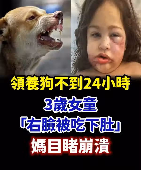 領養狗不到24小時 3歲女童「右臉被吃下肚」媽目睹崩潰