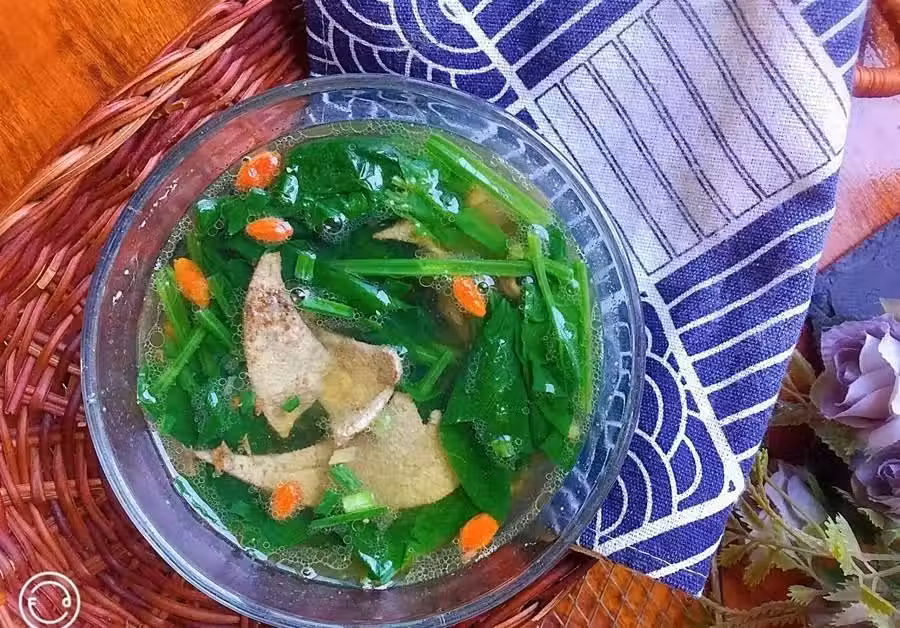 豬肝半斤、菠菜3兩、枸杞適量、生薑一大塊