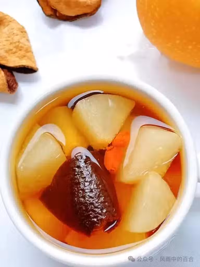 梨被譽為「百果之宗」,乾燥的季節食用再合適不過了,陳皮有健脾潤燥的功效,最近總是咳咳,嗓子不舒服的姐妹可以煮起來。