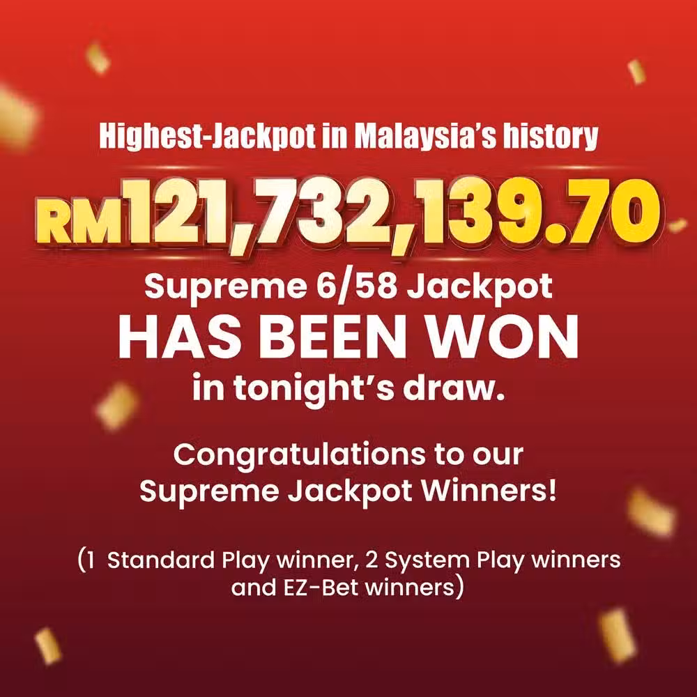今日傍晚7時投注截止時間,好運多多六合彩(6/58)的累積獎金顯示已達1億2173萬2138令吉98仙;較昨天下午5時的1億508萬8000令吉,增加了逾1500萬令吉。