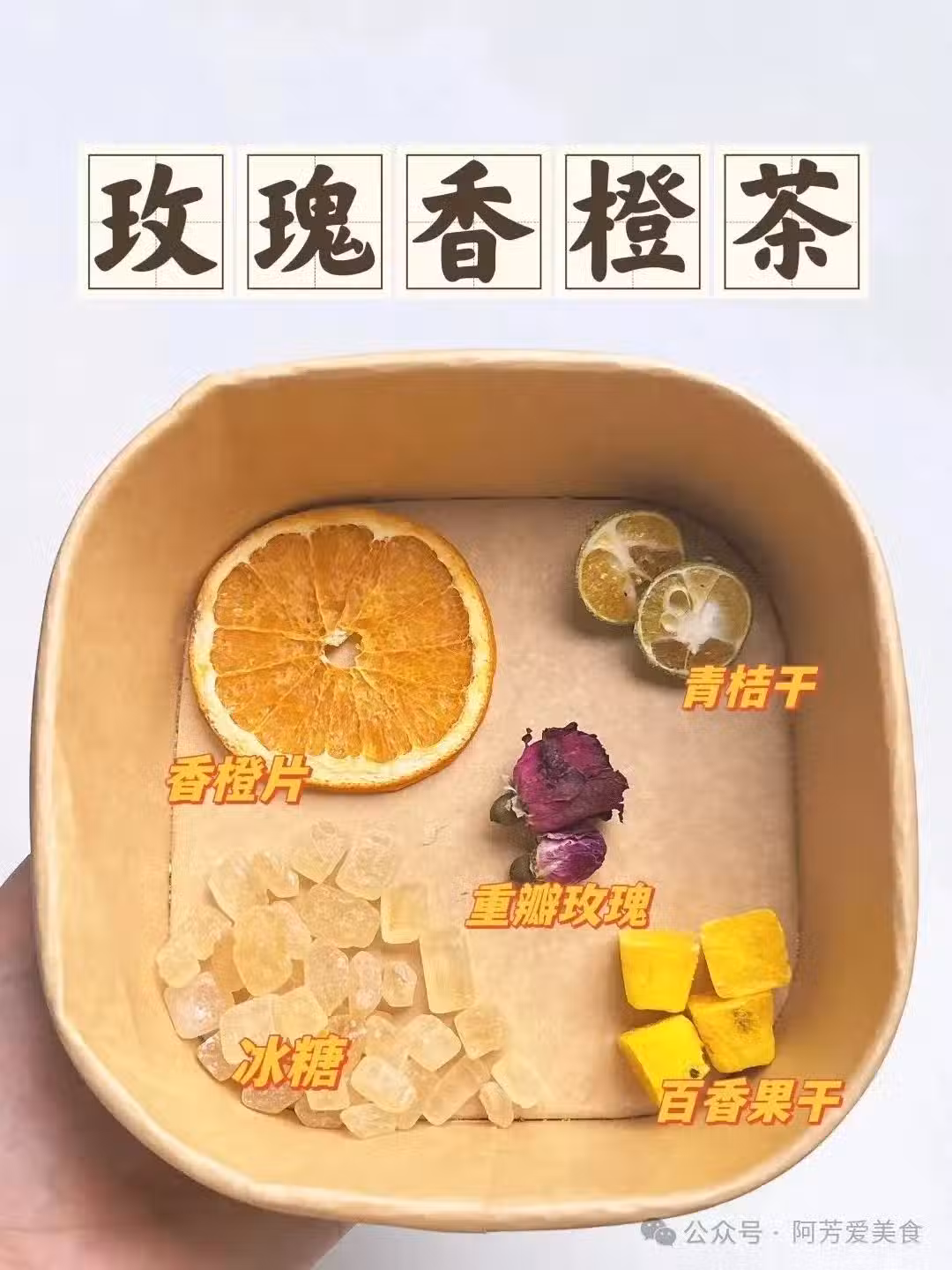 玫瑰香橙茶,玫瑰的花香搭配橙子片很特別。淡淡的花香融合橙子的香氣和酸甜很好喝。也很豐富,大家都可以試試。