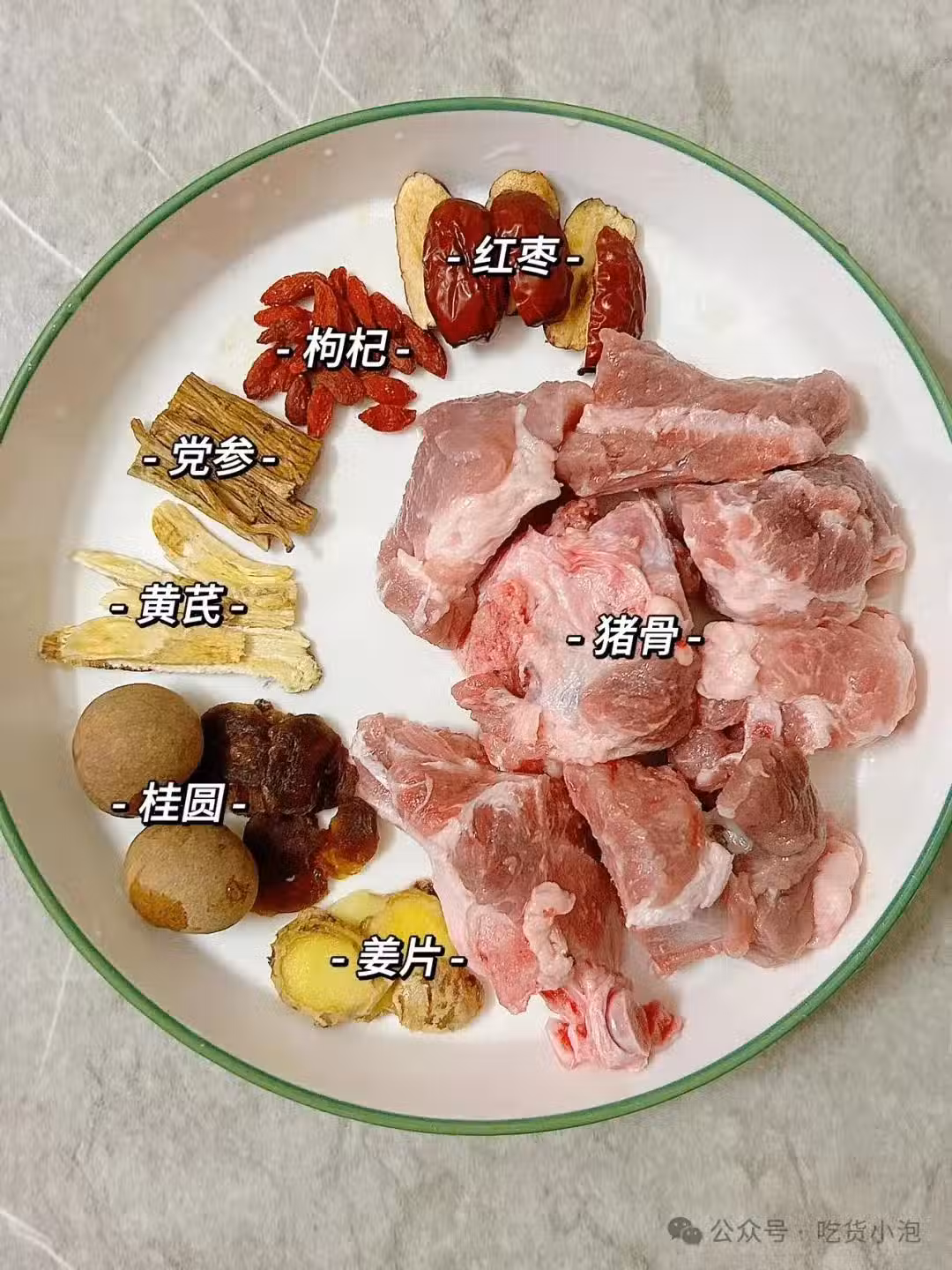 1. 豬骨用料酒和薑片焯水,洗凈;