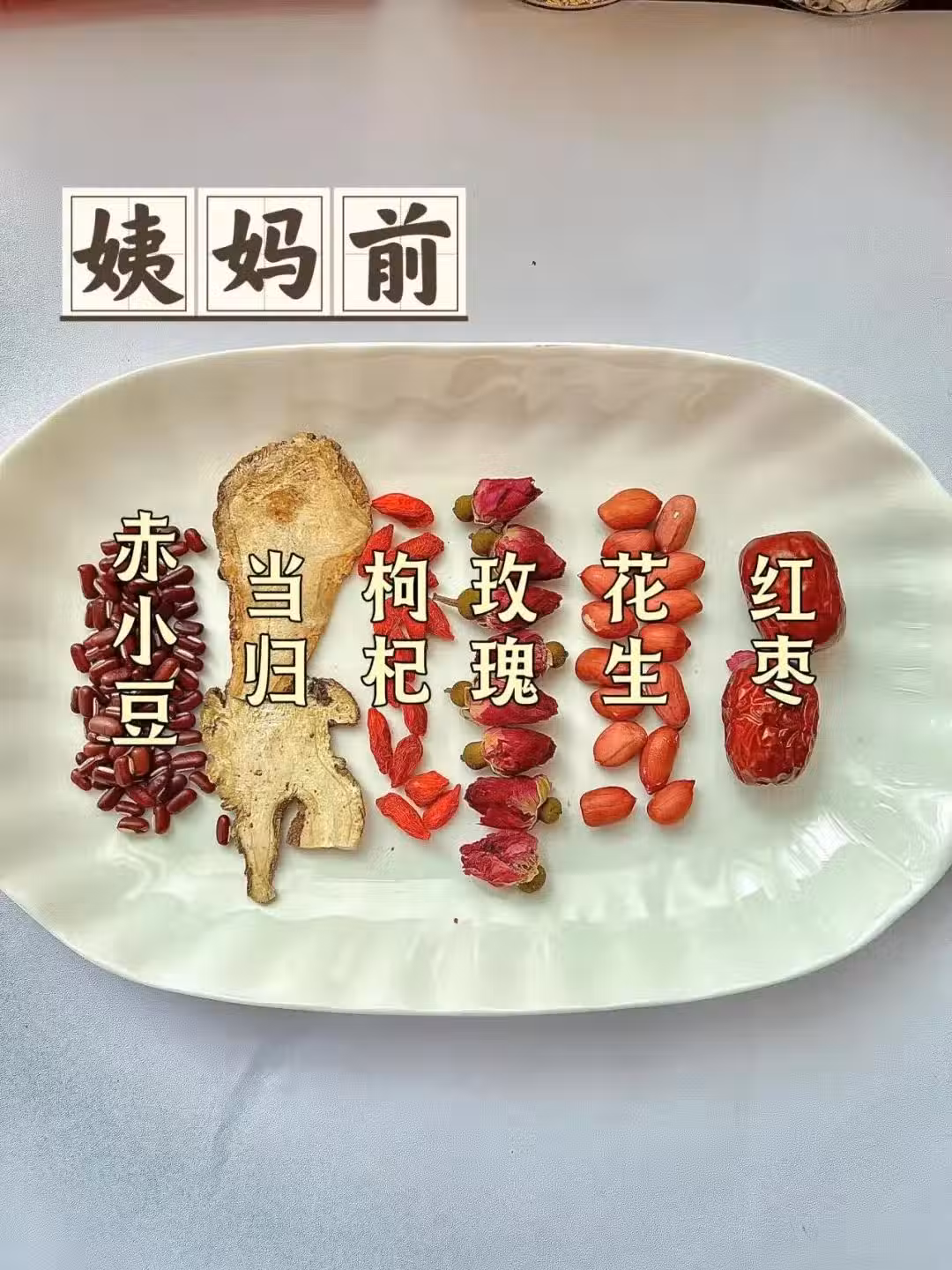 赤小豆+紅皮花生+寧夏枸杞+當歸+紅棗+玫瑰