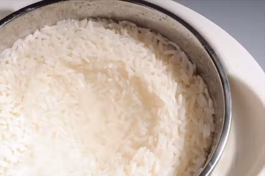 等糯米蒸好以後,我們再準備一個無水無油的容器,把糯米全部倒進去,但是這時候不要直接倒酒麴,而是需要把糯米放涼。