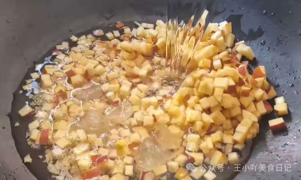 開始煮制:取一口深鍋,將切好的蘋果丁和百合碎一同放入鍋中,加入適量的冰糖(根據個人口味調整),再倒入足夠的清水,水量需沒過所有食材約1-2厘米。大火燒開後,轉小火慢燉,期間需不時攪拌,以防粘底糊鍋。
