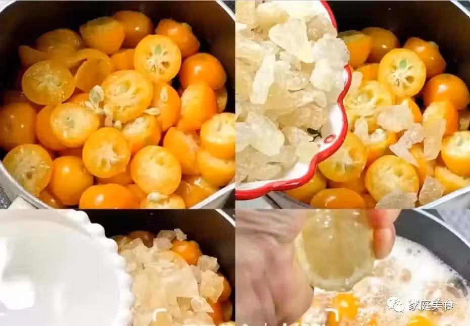 第三步:將水煮至濃稠一些,加上適量蜂蜜,翻炒均勻,關火,這款金桔檸檬果醬做好了。
