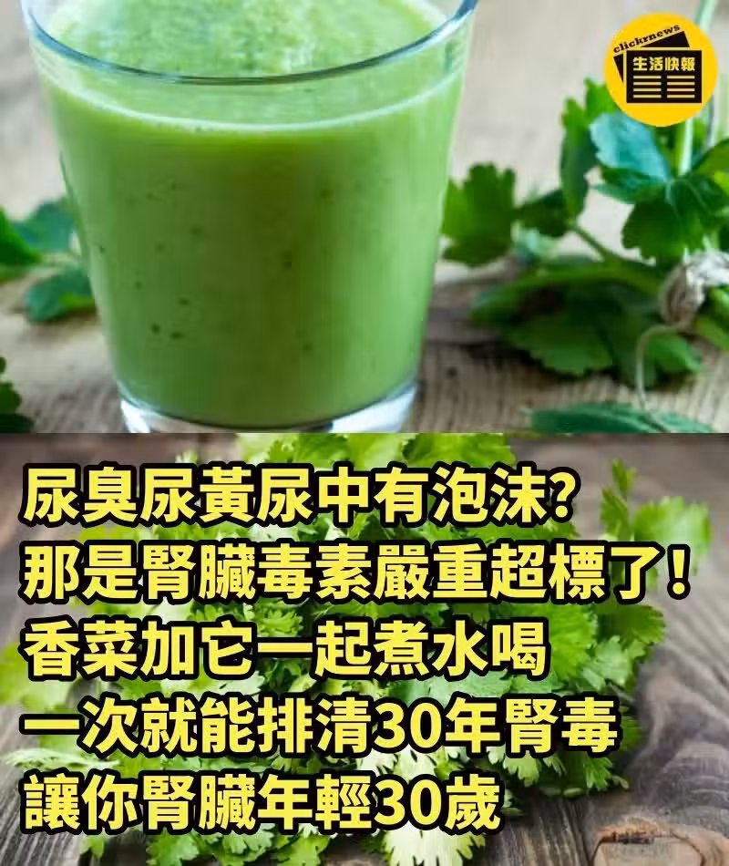 尿臭尿黃尿中有泡沫?那是腎臟毒素嚴重超標了!香菜加它一起煮水喝,一次就能排清30年腎毒,讓你腎臟年輕至少30歲