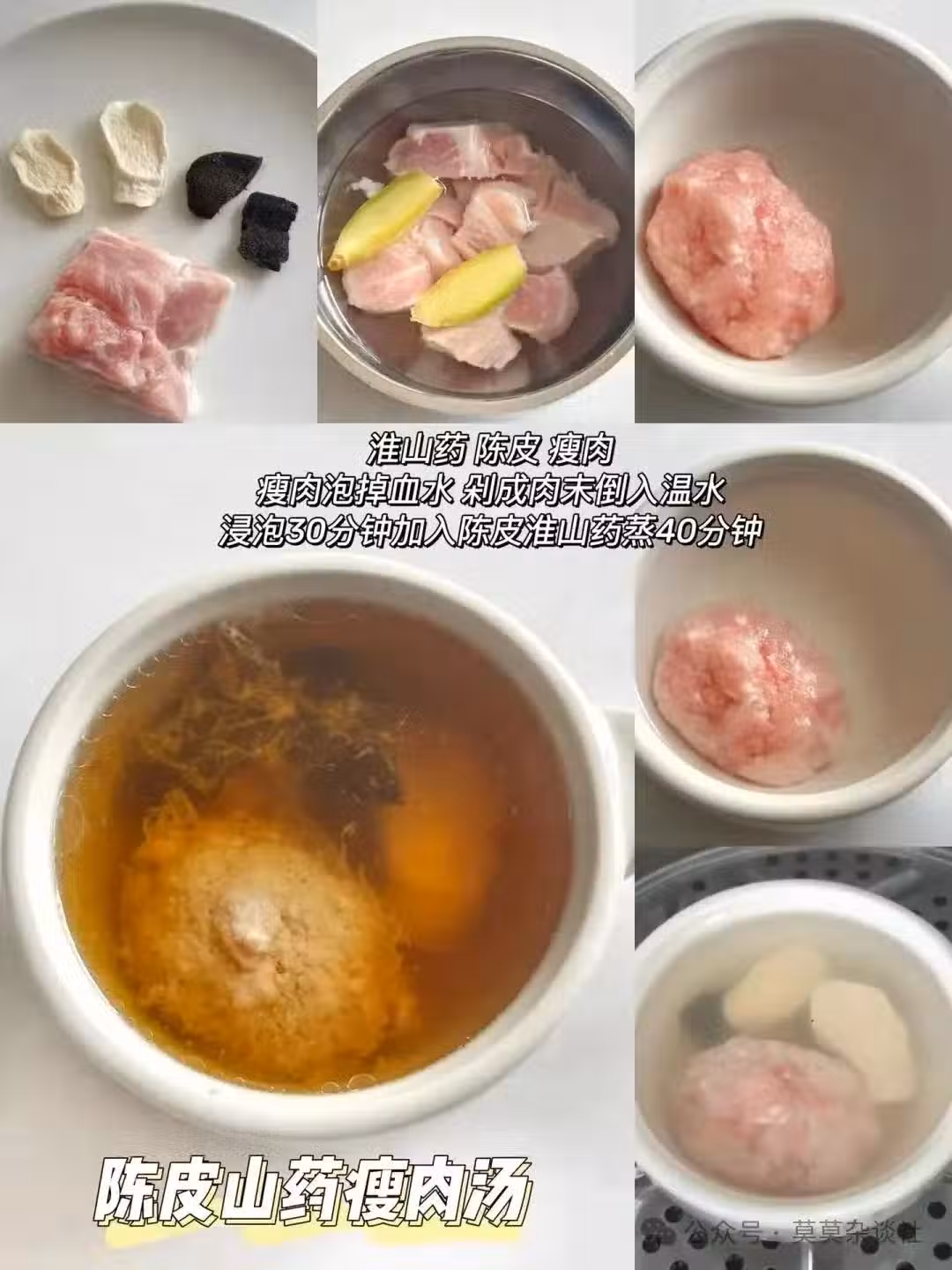 陳皮和淮山藥洗凈,與瘦肉一起蒸煮40分鐘。