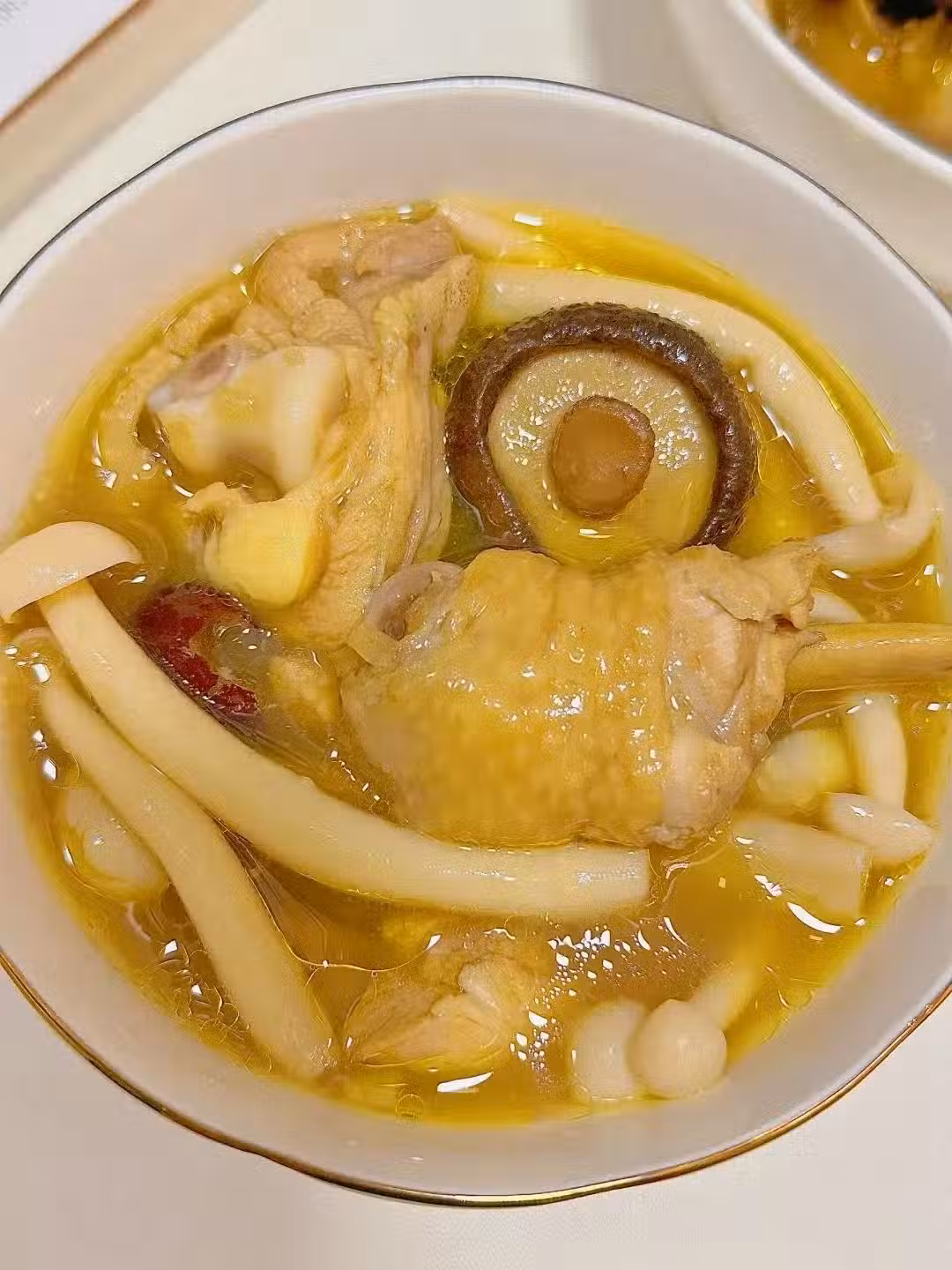 香菇和海鮮菇富含蛋白質和多種維生素,而雞肉則是優質的營養來源,這款湯散發著濃郁的香味,對於抵禦寒冷、補充能量非常有效