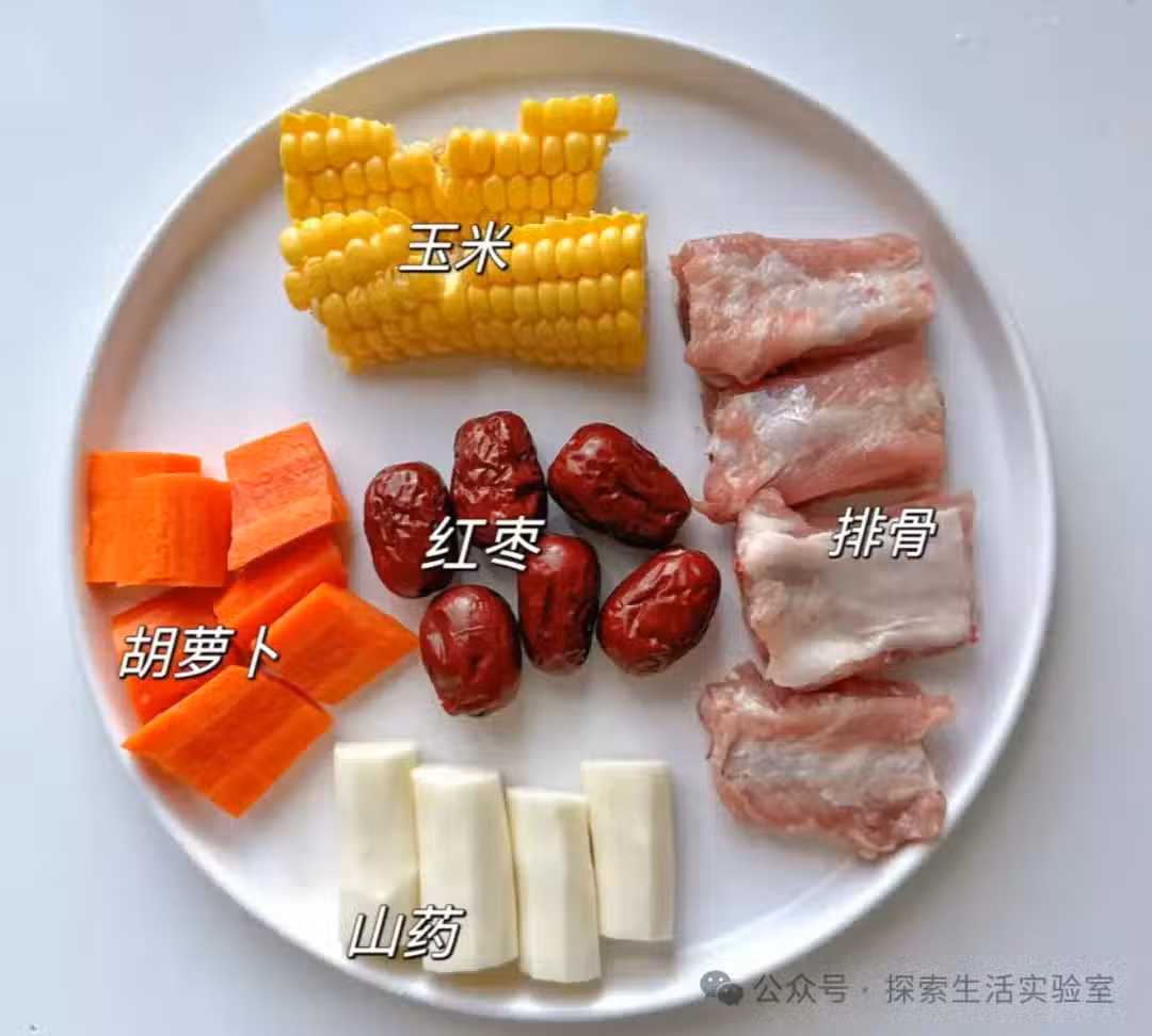 📒做法: ①將排骨洗乾淨,冷水下鍋加入蔥姜、料酒焯水後,洗乾淨備用; ②平底鍋刷油翻炒一下排骨(這樣 會更香哦) ③排骨下鍋,加入足量開水,煮開後加入胡蘿蔔、紅棗、山藥、玉米 ④燉煮40分鐘後加入少量鹽調味,再燉10分鐘,出鍋撒上蔥花,就好啦