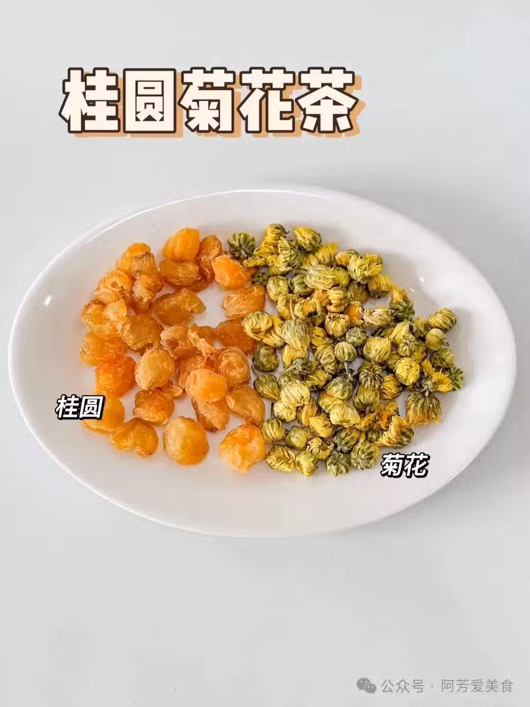 桂圓和菊花還有金銀花的搭配,這二者都是屬於清爽類型的,日常也都能喝,口感是非常的涼爽,喝多了也不會感覺到膩。