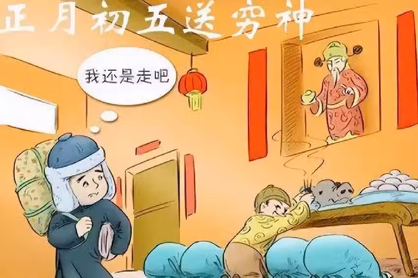 按舊時民間的「送窮」習俗,大年初五這天要將屋裡好好打掃一遍,垃圾收集起來扔掉。