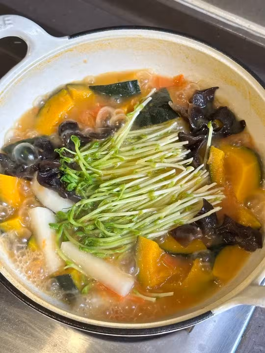 🥗食材準備:南瓜、西紅柿、白蘿蔔、綠豆苗、黑木耳