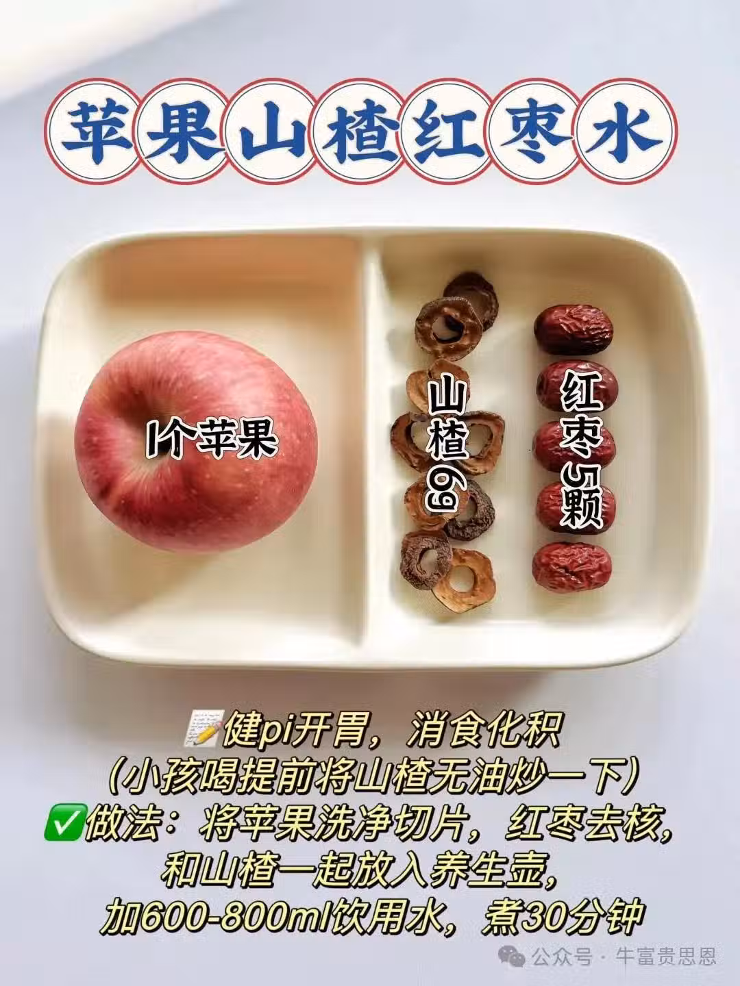 蘋果1個、山楂干15克、紅棗6顆
