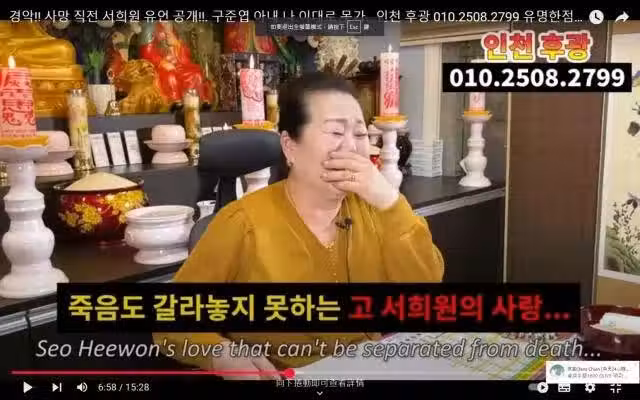 大S日本猝逝|韓命理師稱大S附身 撫胸暴哭:我想活下去