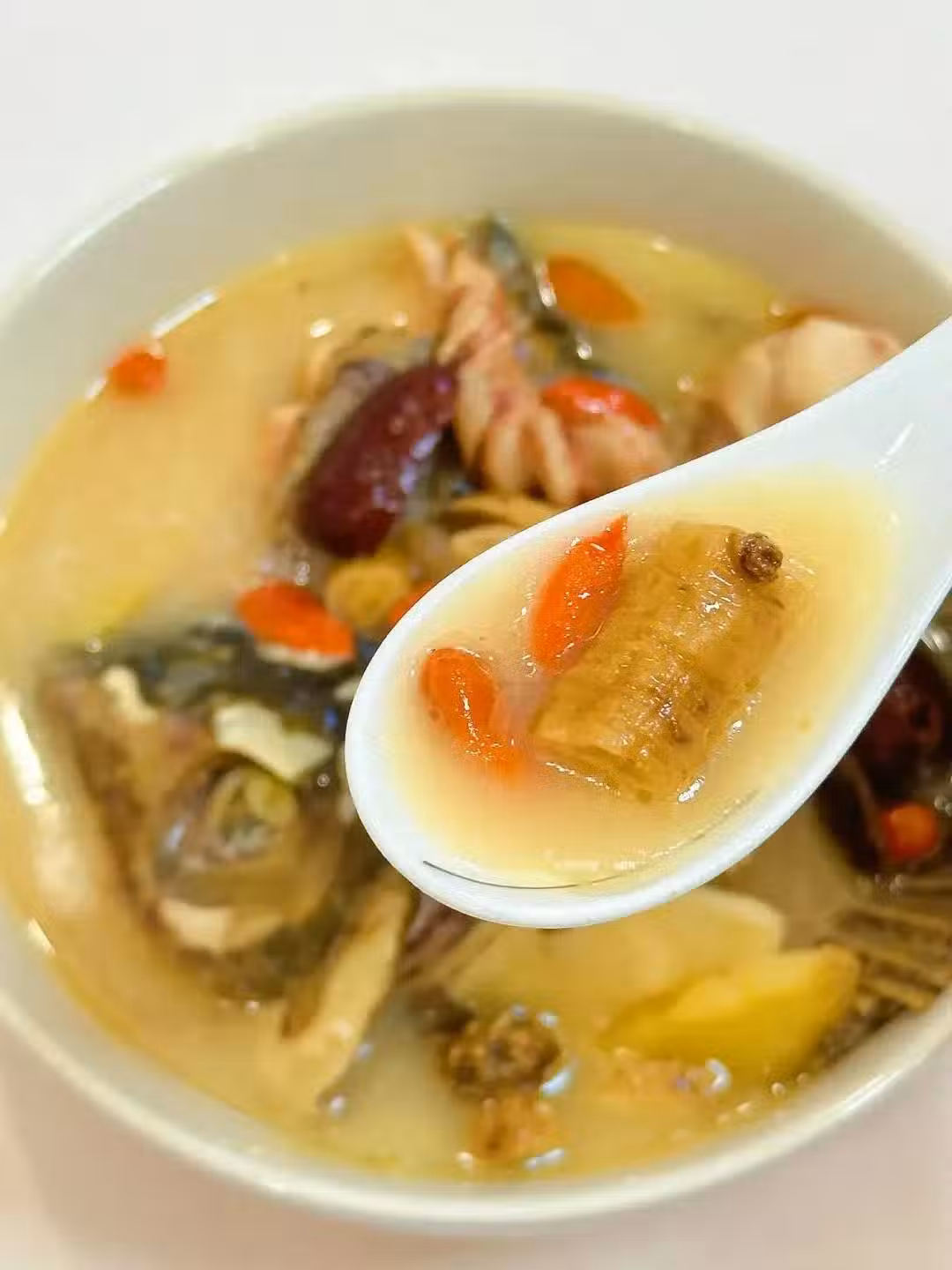 燉煮食材:將煎好的皖魚頭、魚尾放入燉鍋中,加入黨參、北芪、麥冬、紅棗、陳皮,倒入足量清水,大火燒開後轉小火慢燉1.5 - 2小時。
