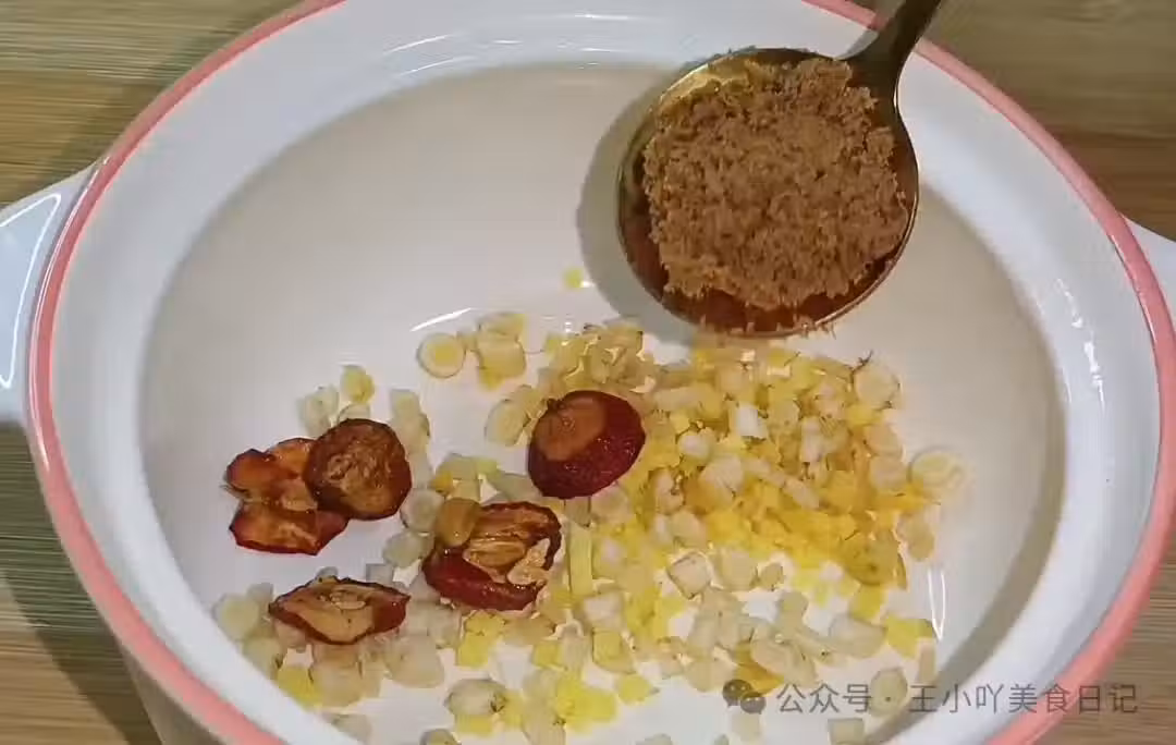 開始泡茶:10分鐘後,將香菜根、山楂片、生薑末和適量紅糖放入一個漂亮的小碗中。紅糖不僅能夠增加茶的甜度,還能補充身體所需的能量,是這道茶飲中不可或缺的一味。接著,倒入剛燒開的開水,水量以剛好沒過食材為宜。用開水泡茶,能夠迅速激發出食材中的營養成分和香氣。