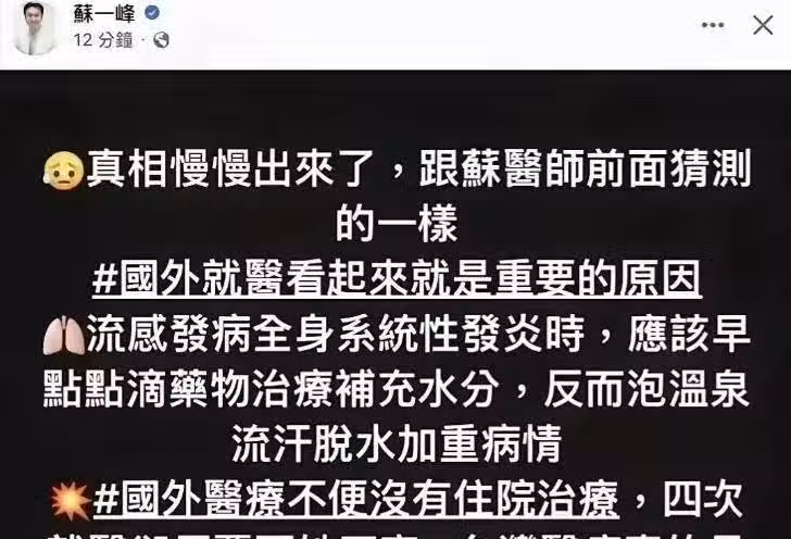 胸科醫生談大S病亡真相:根本不是流感,還去泡溫泉很離譜