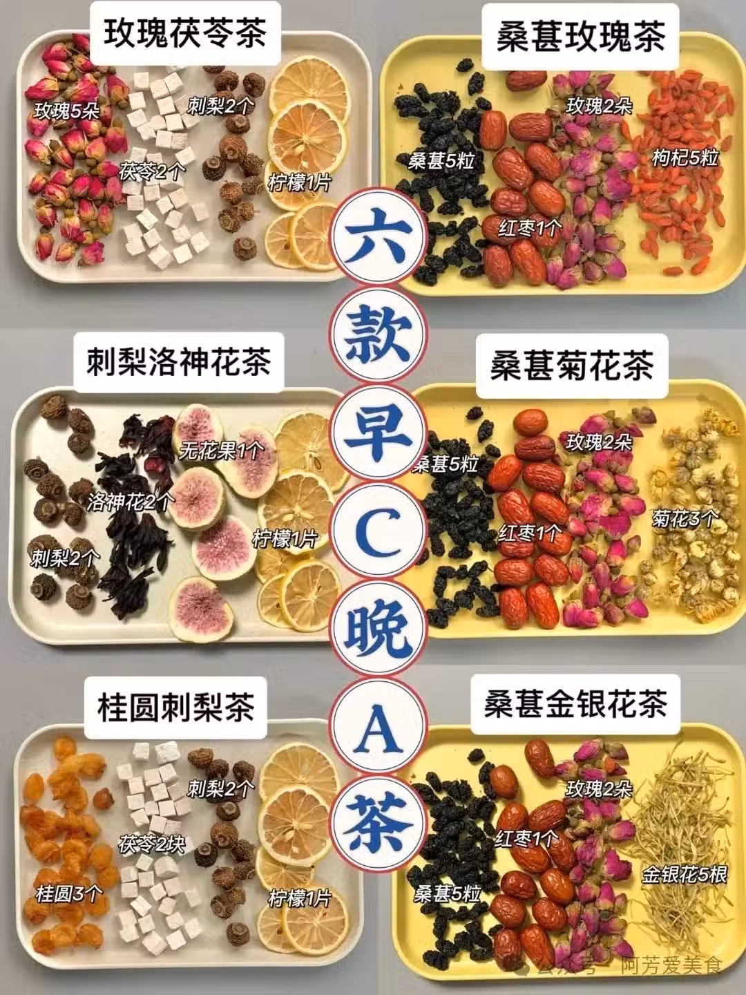 今天,為大家分享的是6款早c晚a茶搭配,好喝又健康,非常的驚艷,快一起來看看 。