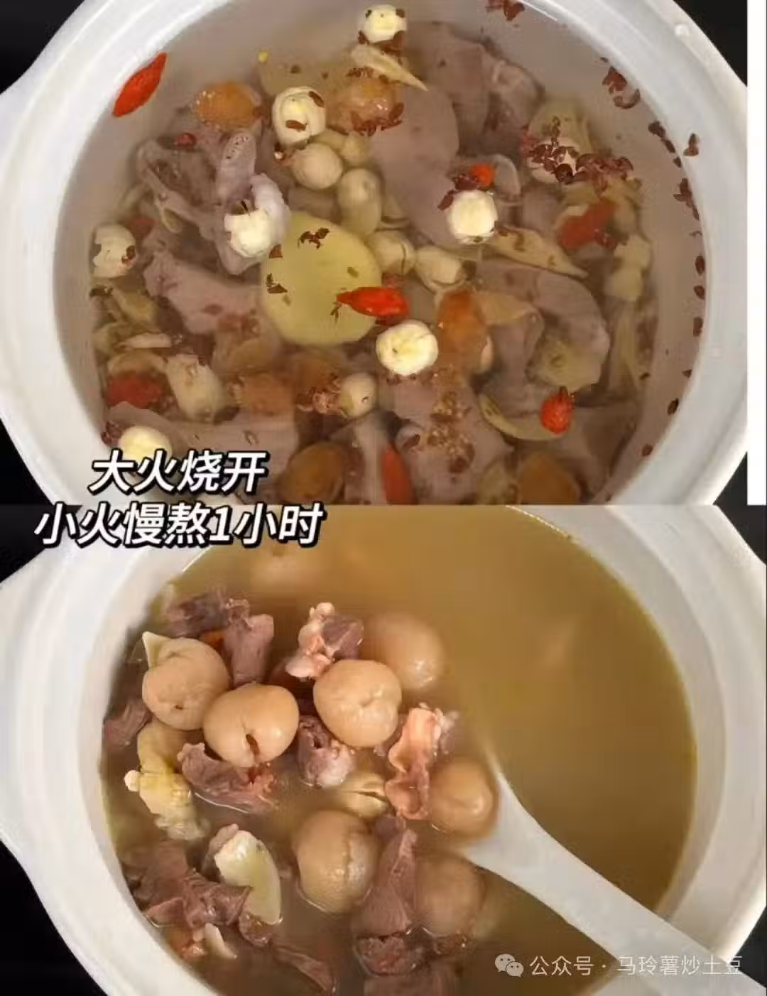 大火燒開,小火煮1小時左右,出鍋前加入適量枸杞悶一下,加鹽調味即可