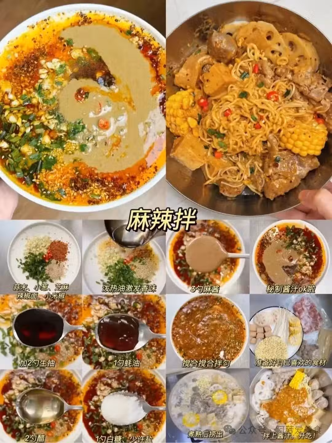 醬香餅和麻辣拌的醬料非常的好吃,只要按照上面的比例調好就可以了,比店裡的還好吃,而且還健康。