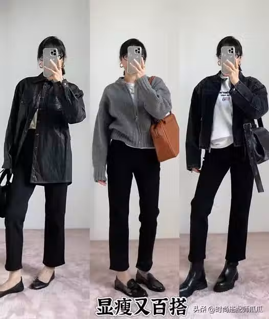 雲朵褲都是全分拖地的款式,想要自己的下裝搭配顯得利落乾淨,推薦黑色九分直筒褲,九分的長度,剛好露出腳踝的位置,不用擔心拖沓問題。它穿起來會比雲朵褲更顯瘦,黑色是所有顏色中最藏肉的,對於梨形以及矮個子的女人很友好,上身非常遮肉顯瘦。