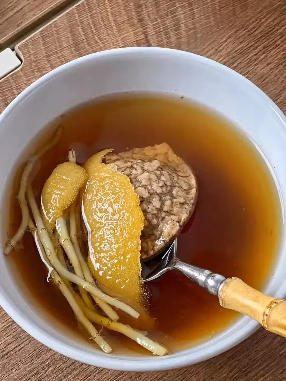 魚腥草50克、1個雪梨皮、2瓣陳皮、冰糖