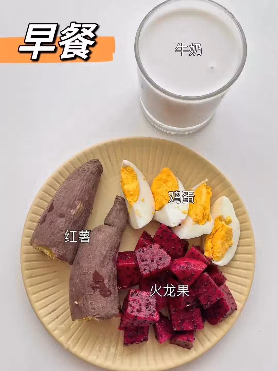 紅薯、火龍果、雞蛋和牛奶都具有較強的飽腹感,可以減少飢餓感,從而降低其他高熱量食物的攝入量。整體組合的熱量相對較低,適合減肥期間食用。但請注意,具體熱量取決於每種食物的攝入量以及烹飪方式。 7️⃣星期七 ☑️食材:牛奶➕黃瓜➕2個雞蛋➕玉米