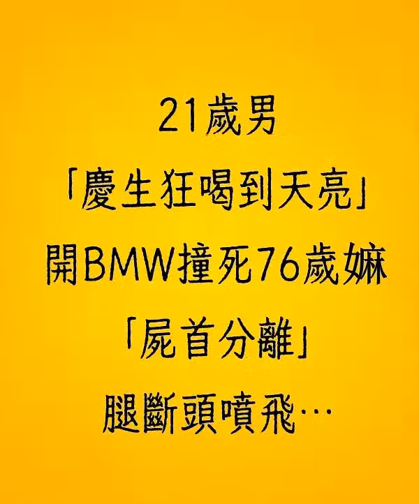 21歲男「慶生狂喝到天亮」開BMW撞死76歲嬤,「屍首分離」腿斷頭噴飛…