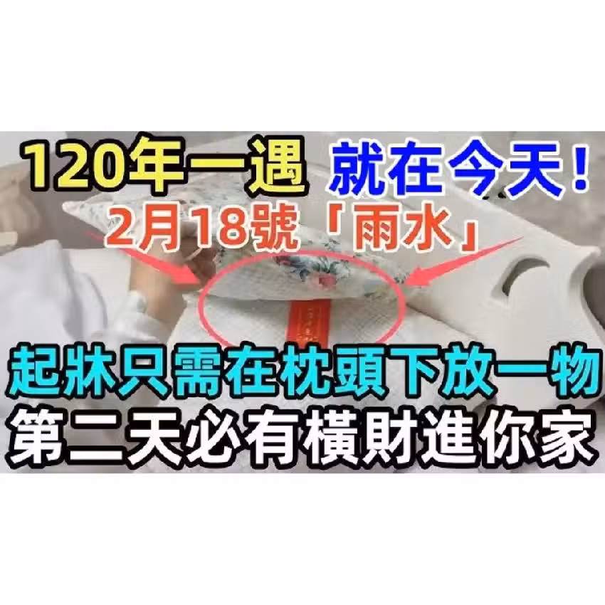 120年一遇,就在今天!2月18號「雨水」,起床後只需在枕頭下放一物,第二天必有橫財進你家!