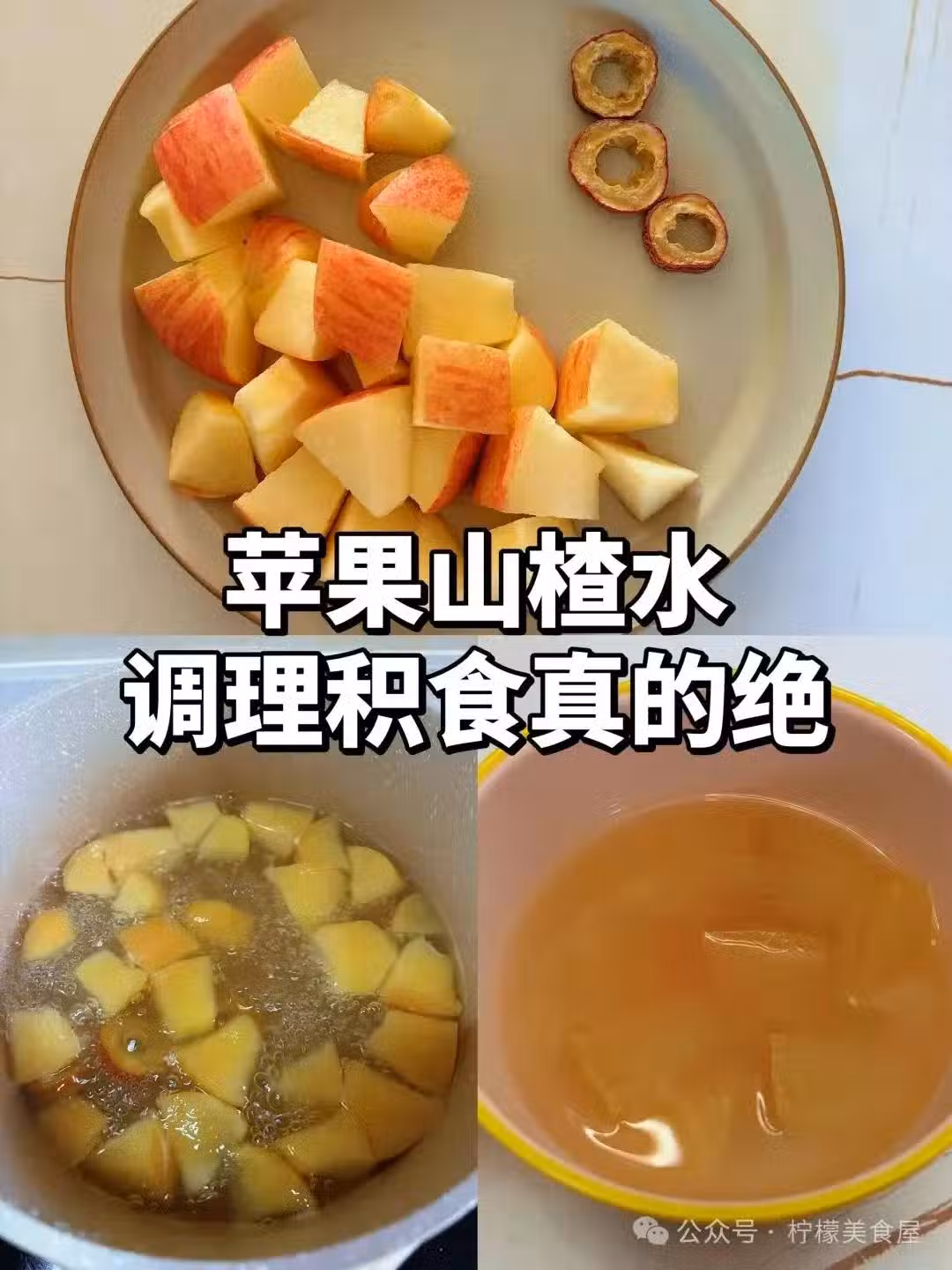 小孩子脾胃虛弱、積食、胃口不好、便秘、睡覺不踏實,可以給他煮這款蘋果山楂水喝,效果是真的好啊。 過年期間,我家小孩肉吃多了,零食吃多了。我給她煮了這款蘋果山楂水。效果特別好。 酸酸甜甜,小孩也很愛喝,食材簡單,做法也簡單,家裡有小孩的,可得學起來備用。 食材: 蘋果半個、干山楂3片 做法: 1、蘋果洗凈去核切小塊,干山楂泡水洗凈。 2、所有食材放到鍋里,加入一碗清水,大火煮沸後,轉小火煮20-30分鐘即可。