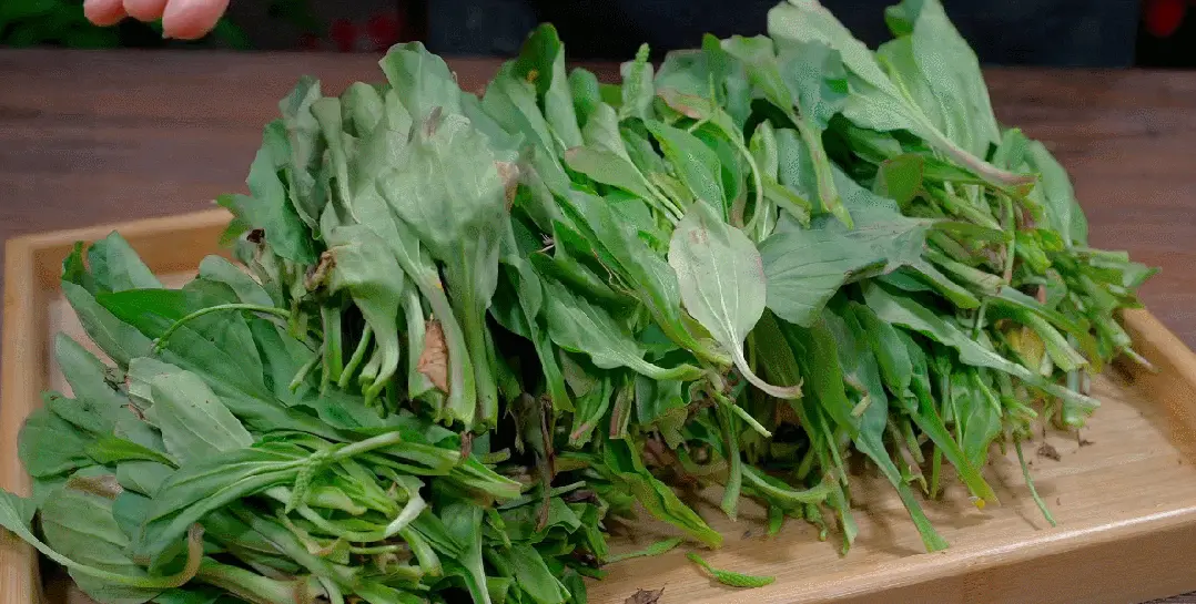 接著,摘除老葉、黃葉以及老稈,只保留嫩葉和莖部。將處理好的車前草放入盆中,加入足量清水,撒上幾勺食鹽,浸泡10分鐘。