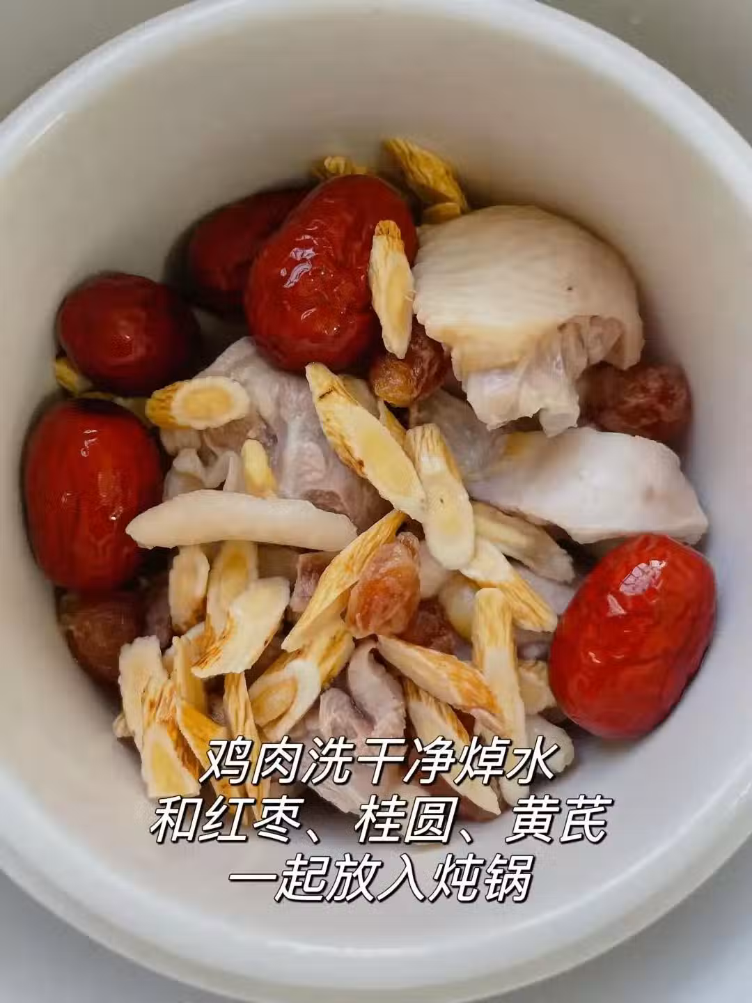 1. 準備食材:雞肉(如雞腿或整雞)、紅棗、桂圓肉、薑片。雞肉需要洗凈並切塊,紅棗和桂圓肉洗凈備用。
