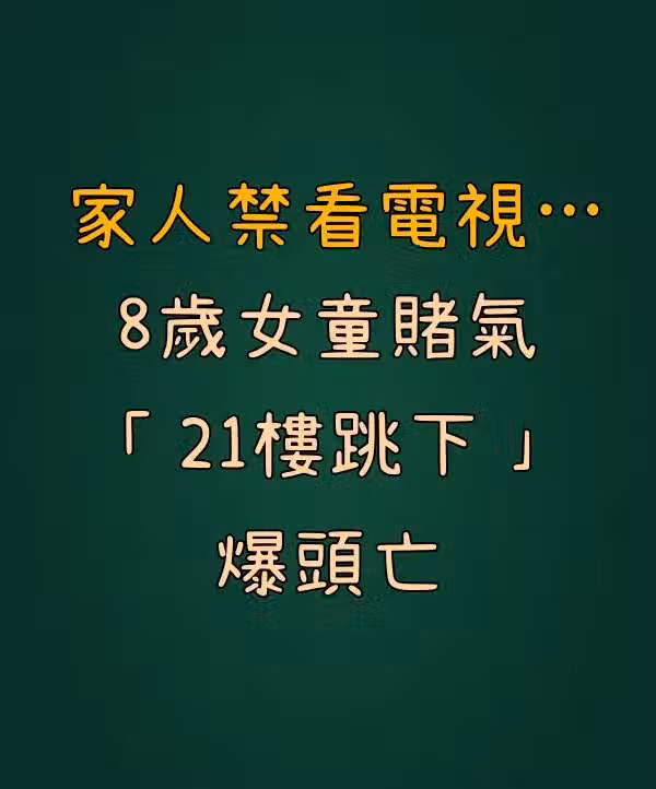 家人禁看電視,8歲女童賭氣21樓跳下「爆頭亡」……