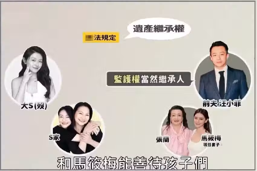 那剩下的繼承人就是大S的一雙未成年兒女,據台媒報道,大S兒女的監護權會自然轉給汪小菲,遺產也歸汪小菲代管,可能也是因此讓S家著急了,畢竟如果是這樣,那大S和汪小菲的官司很可能不了了之,甚至還讓汪小菲得到大S的大部分財產,這讓S家怎麼能坐得住?