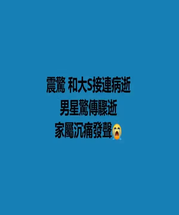 震驚!和大S接連病逝 男星驚傳驟逝 家屬沉痛發聲