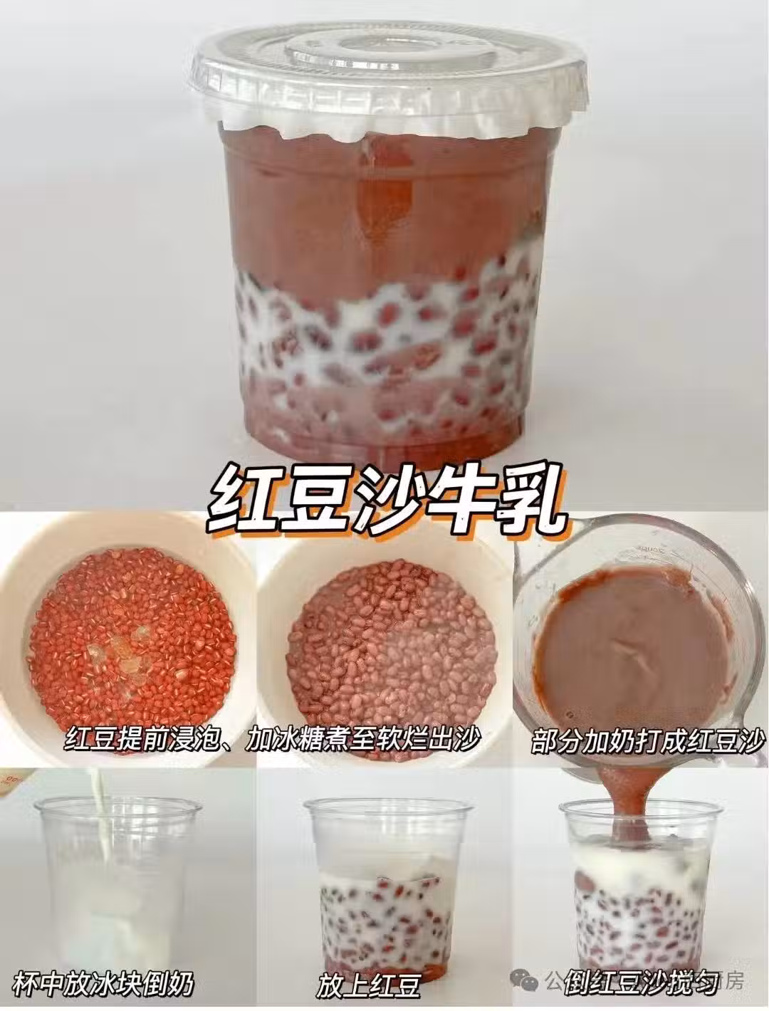 以下是紅豆沙牛乳的製作步驟及參考重量: