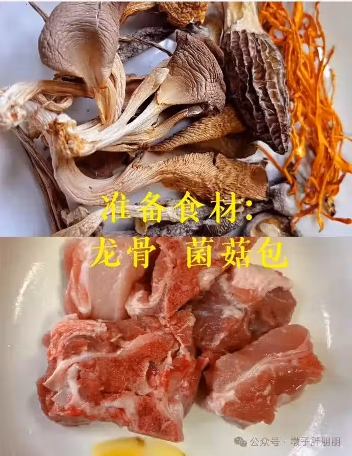 3、將豬脊骨、菌菇、紅棗、枸杞、薑片放入鍋中,加入足夠的水。