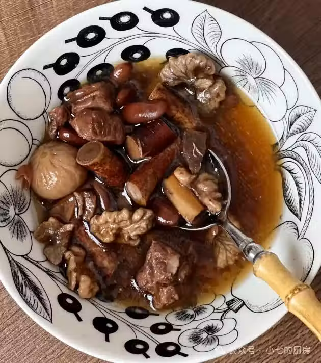 食材:紅腰豆20克(提前用水浸泡2-5小時)、五指毛桃20克、牛大力干品15克、核桃2個、豬骨頭400-500克、無花果2個、蜜棗1顆,生薑1-2片